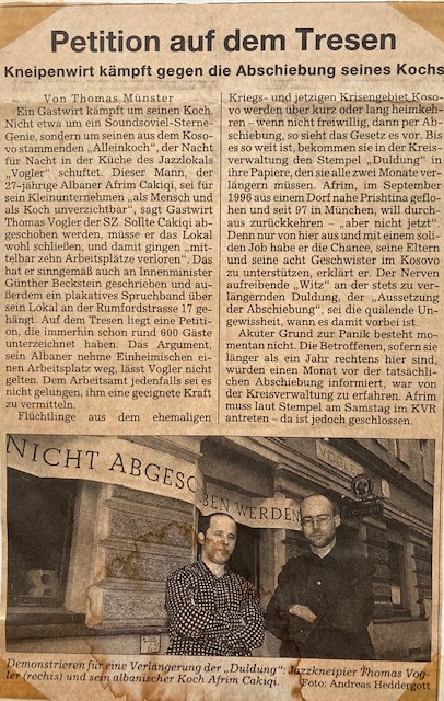 In der nicht gerade ereignisarmen Geschichte des "Voglers" war ein Kapitel, an das sich viele von Ihnen vielleicht noch erinnern werden, die Abschiebung meines Kochs Afrim durch den ehemaligen bayerischen Innenminister Günther Beckstein, CSU, im Jahr 2000.